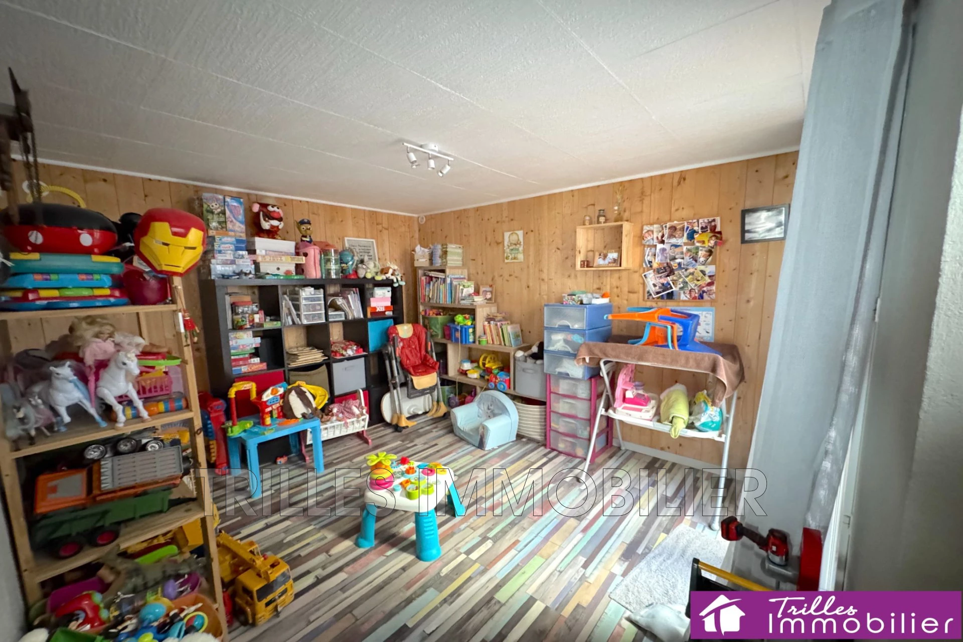 Au 1er étage : Belle luminosité pour la pièce de vie composée d'une cuisine équipée moderne de qualité et d'un coin salon avec accès terrasse ; un toilette ; une salle d'eau ; et une chambre (actuellement utilisée en salle de jeux) avec accès terrasse.